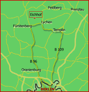 über die B 109, Ausfahrt Wandlitz, Richtung Prenzlau. In Gollin abbiegen nach Templin, Lychen, oder